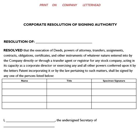 Download Corporate Resolution Template Signing Authority Kindle Editon online is a convenient and frugal way to read Corporate Resolution Template Signing Authority you love right from the comfort of your own home. Yes, there sites where you can get Kindle Editon "for free" but the ones listed below are clean from viruses and completely legal to use.